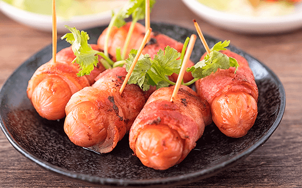SALCHICHAS ENVUELTAS CON TOCINO AHUMADO