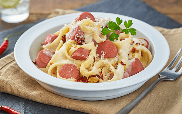 FETUCCINI CON SALCHICHA EN SALSA DE PARMESANO