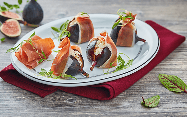 HIGOS RELLENOS DE QUESO DE CABRA ENVUELTOS CON JAMÓN SERRANO